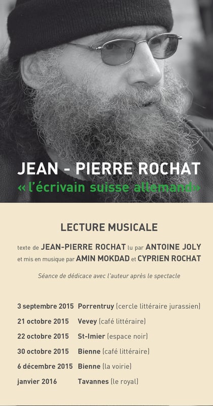 Le timing du projet coïncidant parfaitement avec la sortie du livre ''L'écrivain suisse allemand'', les textes du futur spectacle seraient uniquement des extraits du livre et permettraient ainsi de promouvoir le récit au niveau national et au-delà du monde de la littérature. Le projet étant arrivé au terme de son développement, deux représentations régionales furent données, l'une à ''La Voirie'' de Bienne et l'autre au ''Café du Soleil'' de Saignelégier. Ces deux représentations furent l'occasion de tester le spectacle en situation réelle et de produire, dans le cas de ''La Voirie'', un DVD promotionnel, la représentation ayant été filmée et enregistrée.